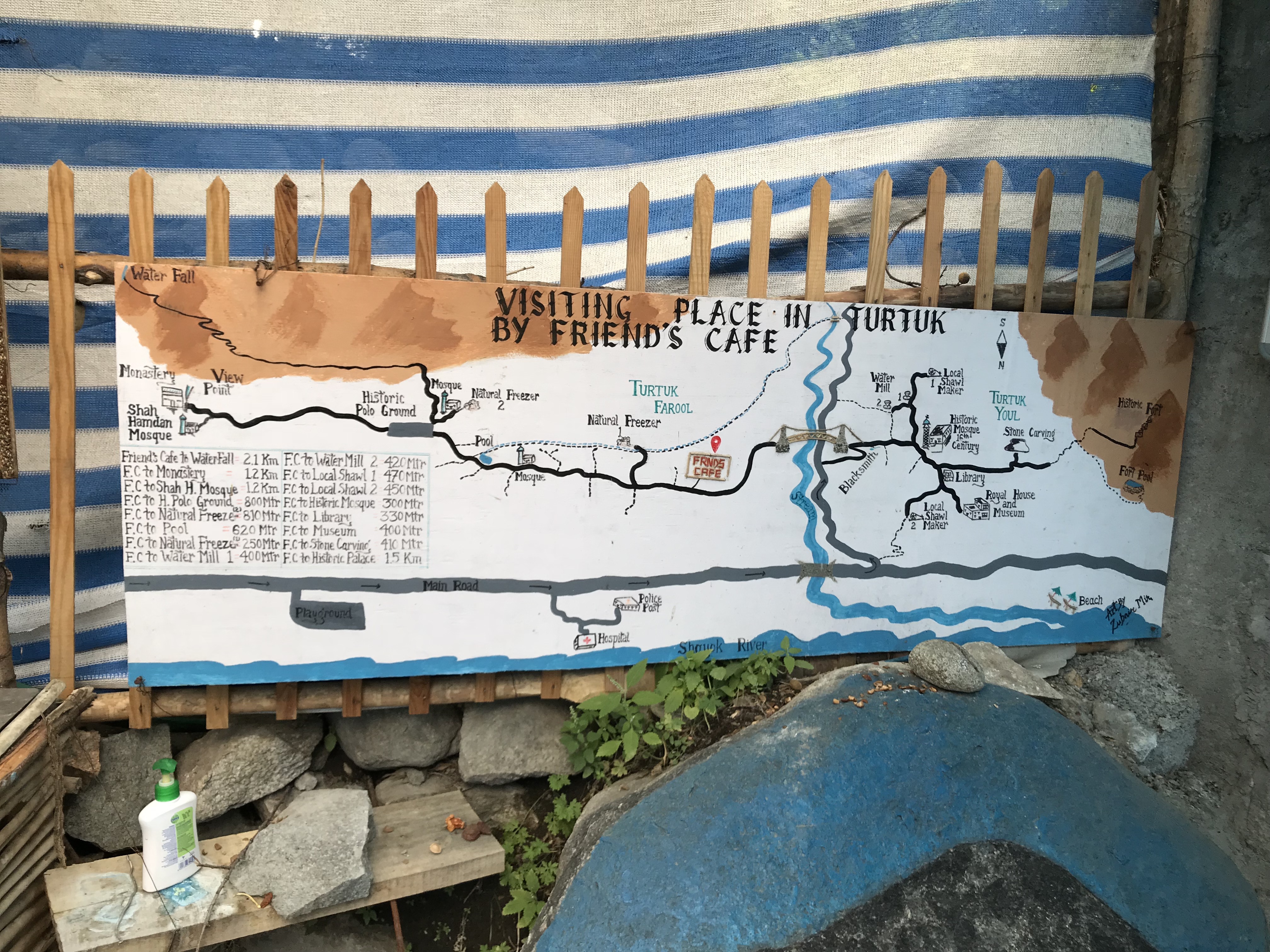 Since Turtuk is not really mapped out on maps suggest visiting one of the cafes on either side of the bridge where they have maps of the village featured prominently. Since we visited Friend’s Cafe first, clicked the picture there. Which is where I also had this amazing bread made from local buckwheat called Kirris which was consumed with yoghurt and local flowers.