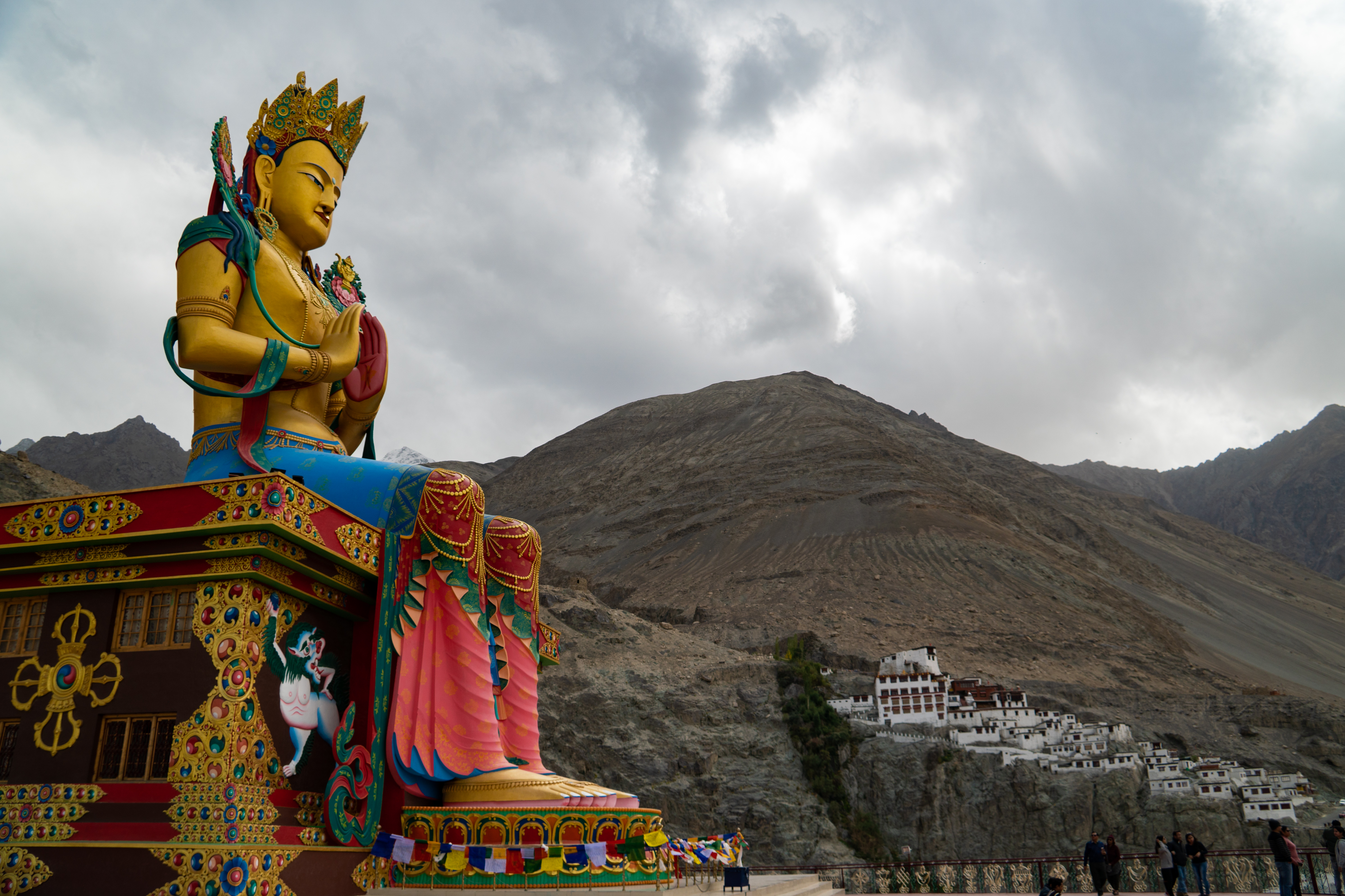 The first place we visited was the Diskit monastery, which has this huge statue of a female deity called Jampa Buddha behind which is the monastery.